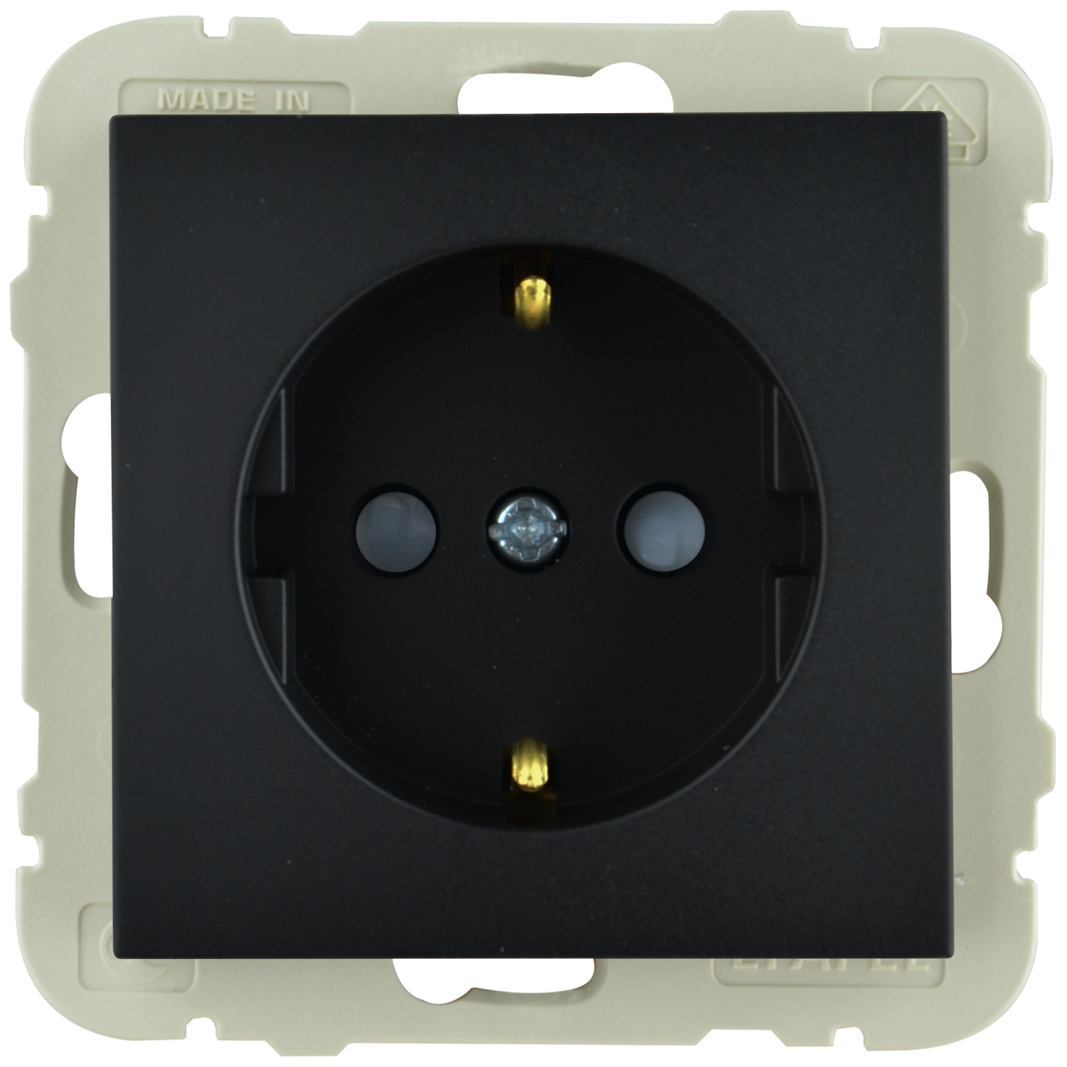 Unterputz Schutzkontakt-Steckdose mit erhöhtem Berührungsschutz Logus90 von EFAPEL, Material: Polyethylen, Sockelhöhe 30mm, für Spreiz- und Schraubbefestigung, Anschlüsse mit schraublosen Verbindungsklemmen, einfach anreihbar durch verzahnte Trägerplatte;