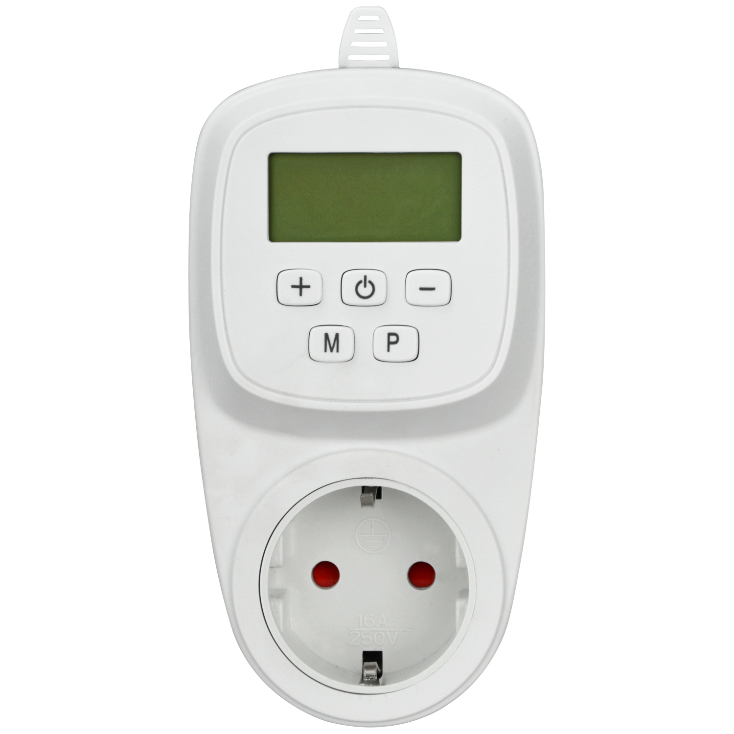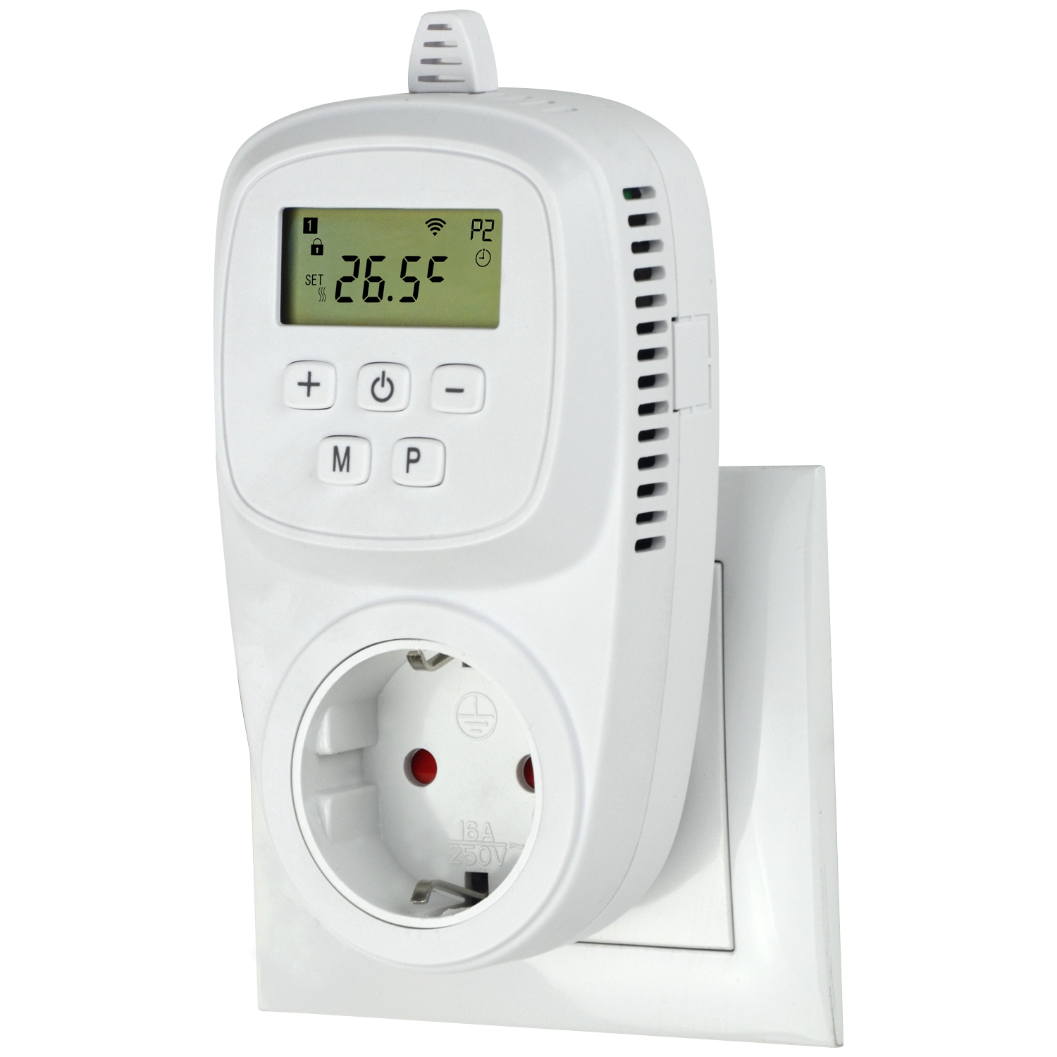Steckdose mit integrierten digitalen Thermostat, Spannung 220-240V AC 50Hz, Relais max. 16A, einstellbarer Temperaturbereich +5°C bis +35°C (0.5°C), Frostschutzfunktion(+5 bis +10°C einstellbar), Bediensperre, Messgenauigkeit ±0.5°C, Schutzart IP20, Arbeitstemperatur 0°C bis +50°C; ACHTUNG: Kann nicht mit dem Funkthermostat INFRAe² WiFi verbunden werden;Optional kann das Thermostat auch über WiFi und die kostenlosen Smart-Home-Apps "Tuya Smart" oder "Smart Life - Smart Living" bedient werden, es ist keine zusätzliche Smart Home-Steuerzentrale oder Gateway erforderlich.