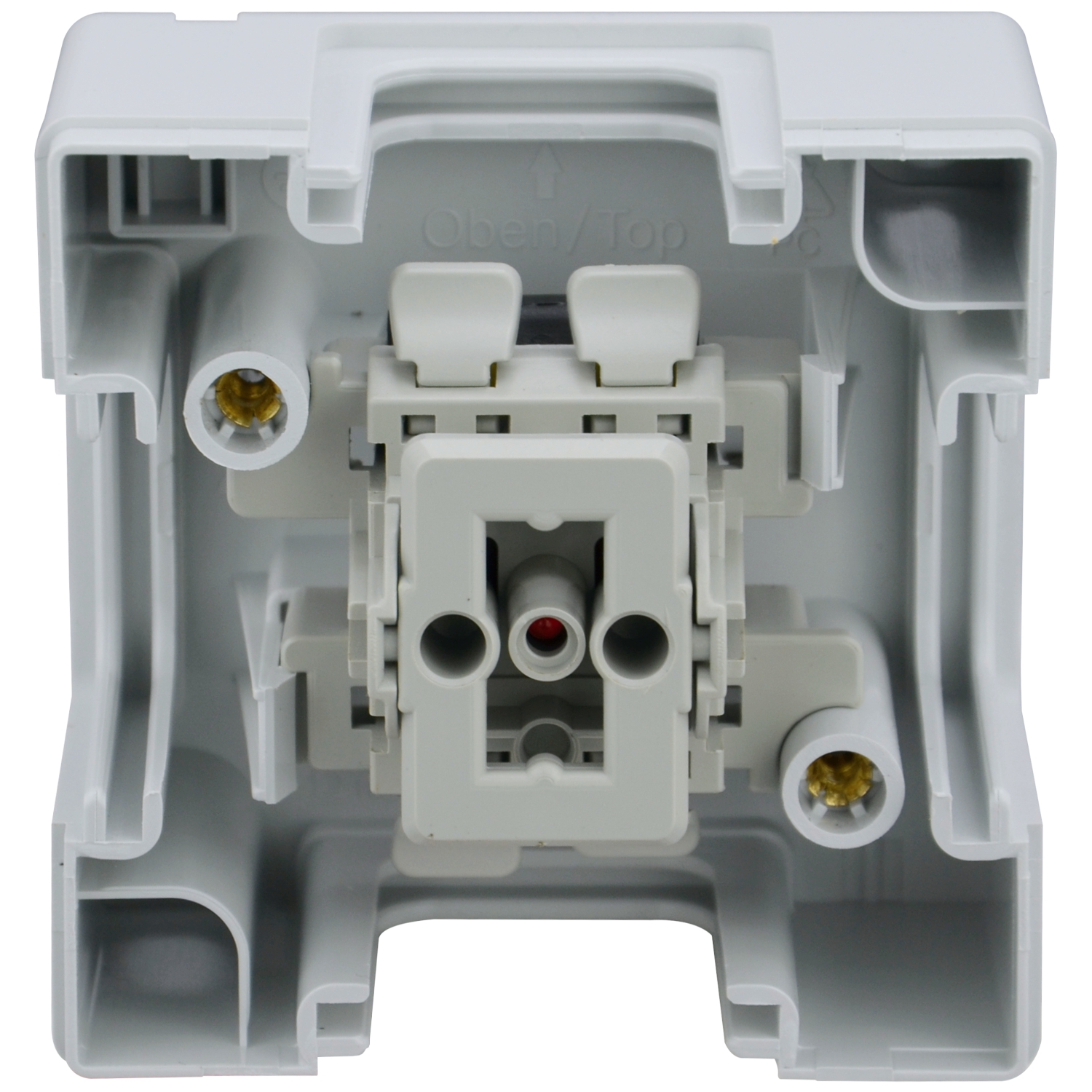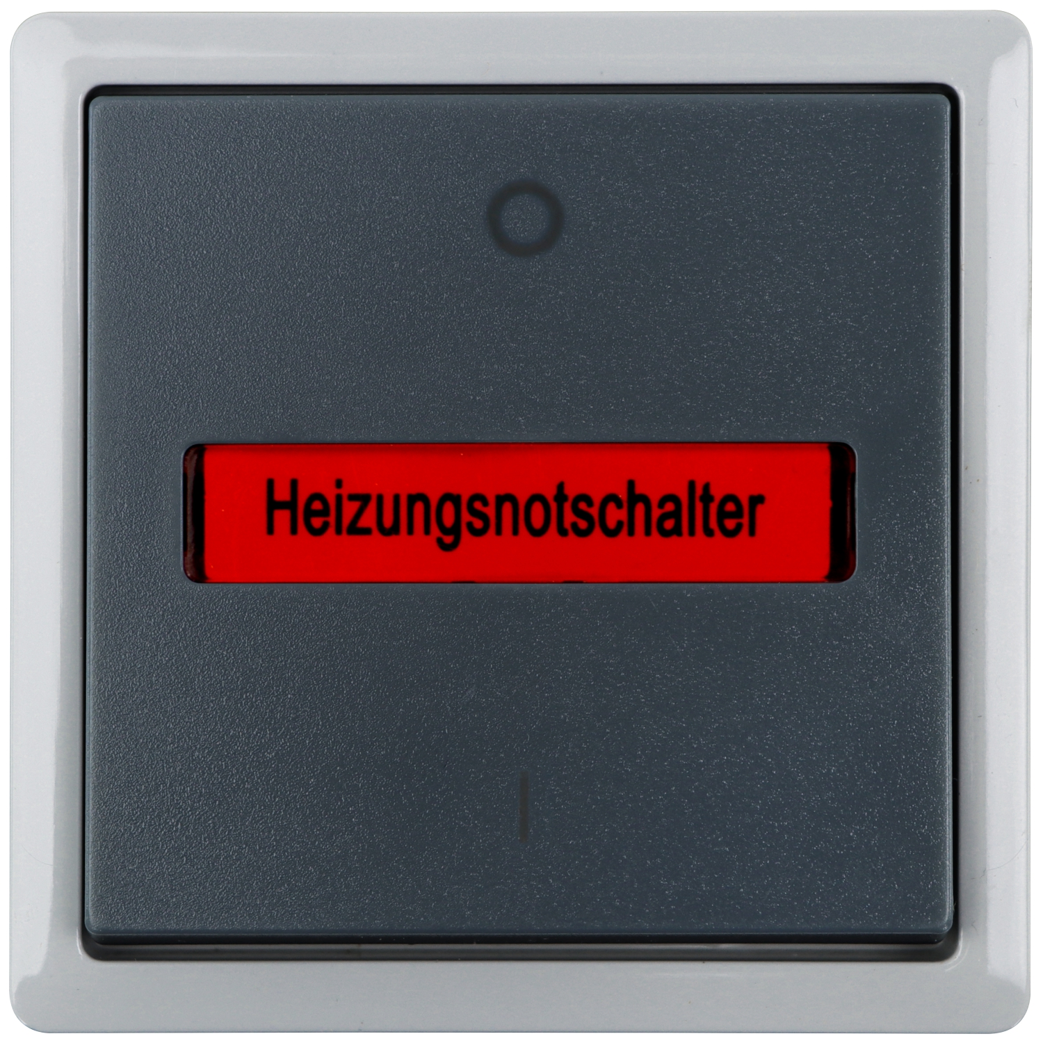 Aufputz-Feuchtraum Kontroll-Ausschalter / Heizungsnotschalter, Beschriftungsfeld rot transparent, LED Kontrolllampe, Beschriftet mit 0-1, 2. Beschriftungslabel "Heizungsnotschalter" beiliegend, Material Polycarbonat, Halogen- und PVC-frei, hellgrau/dunkelgrau, Temperaturbereich -30 bis +70°C, 4 Kabeleinführungen, schlagfest IK10, IP44, 10A, 250VAC