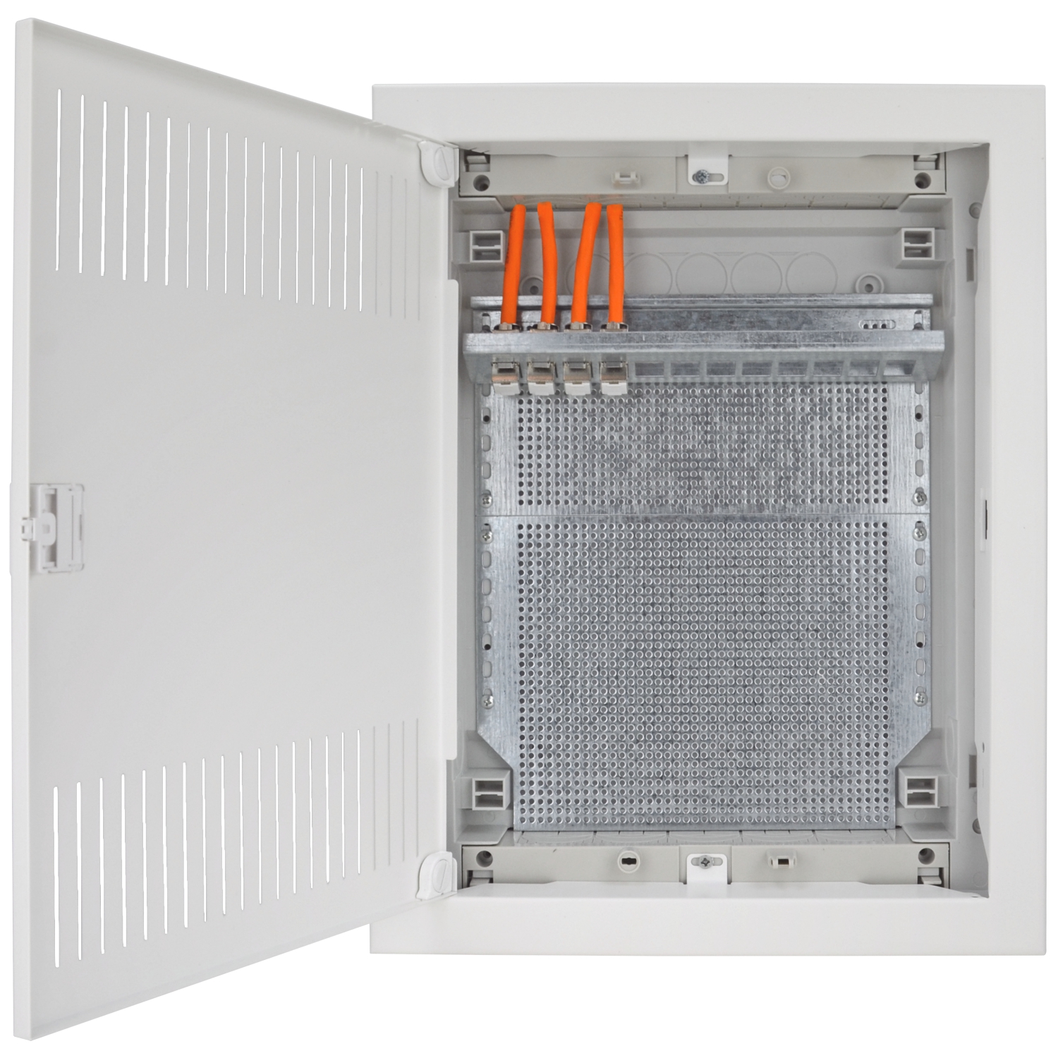 Träger zur Montage am Lochblech in den Mediaverteilern, Aufnahme von 12x Keystone Modulen, Material: Edelstahl;