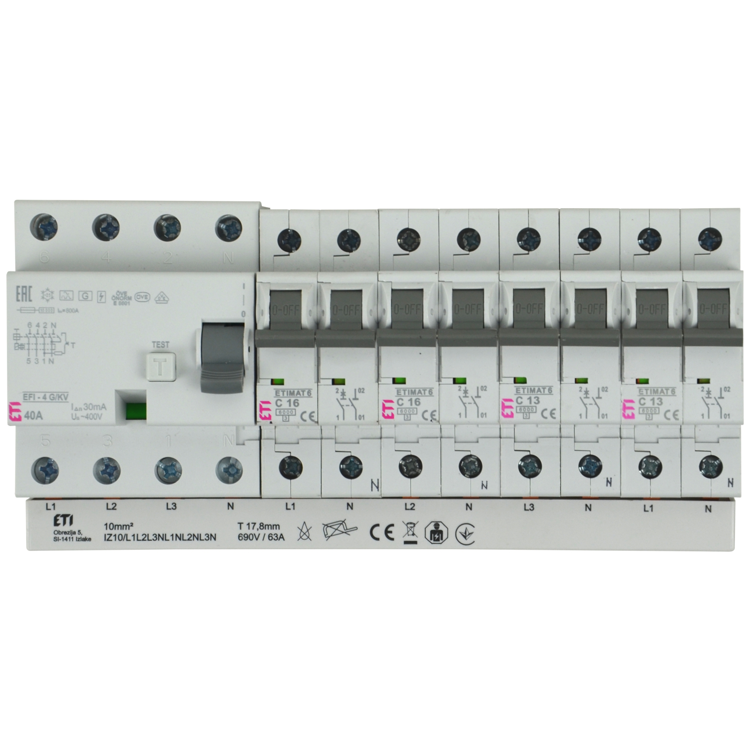 Gabel-Sammelschiene 4p 12TE L123~N~L~N