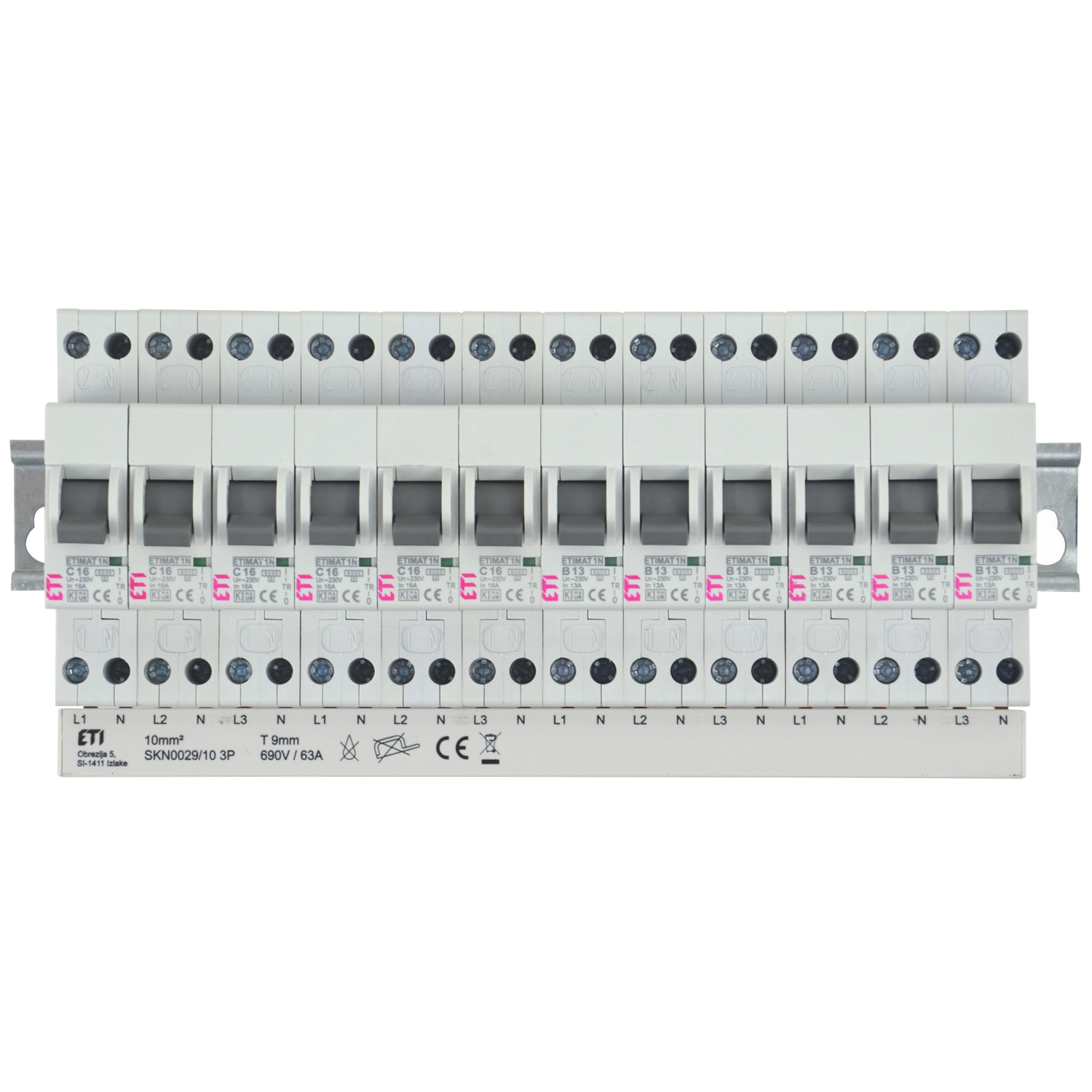 Vorkonfektionierte Stift-Sammelschiene inkl. Endkappen für ETI Leitungsschutzschalter 1+N mit 1TE, 4polig / 12TE (L1/N - L2/N - L3/N - L1/N - L2/N - L3/N - L1/N - L2/N - L3/N - L1/N - L2/N - L3/N), Querschnitt: 10mm²;