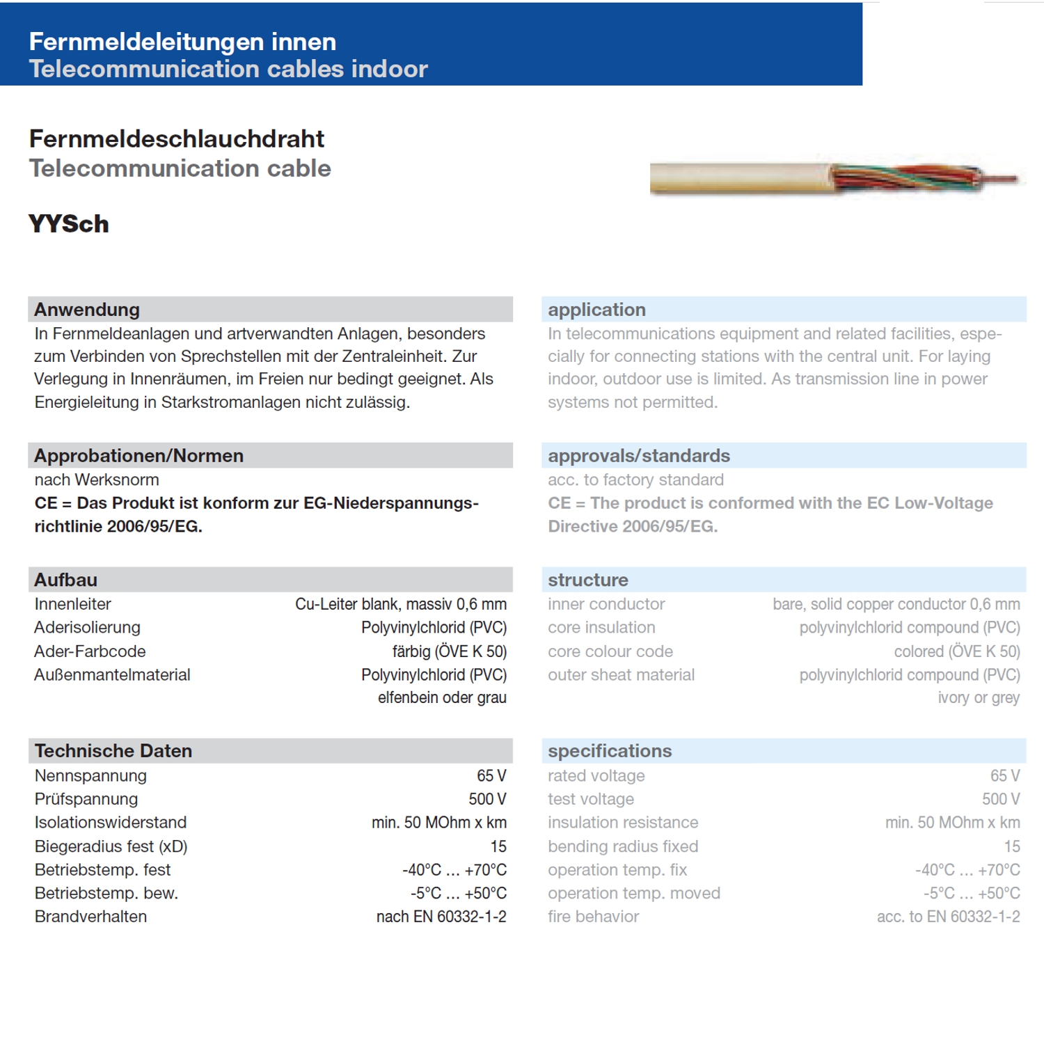 PVC-Fernmelde-Schlauchdraht YY-SCH 6x0,6, Bund 100 Meter;