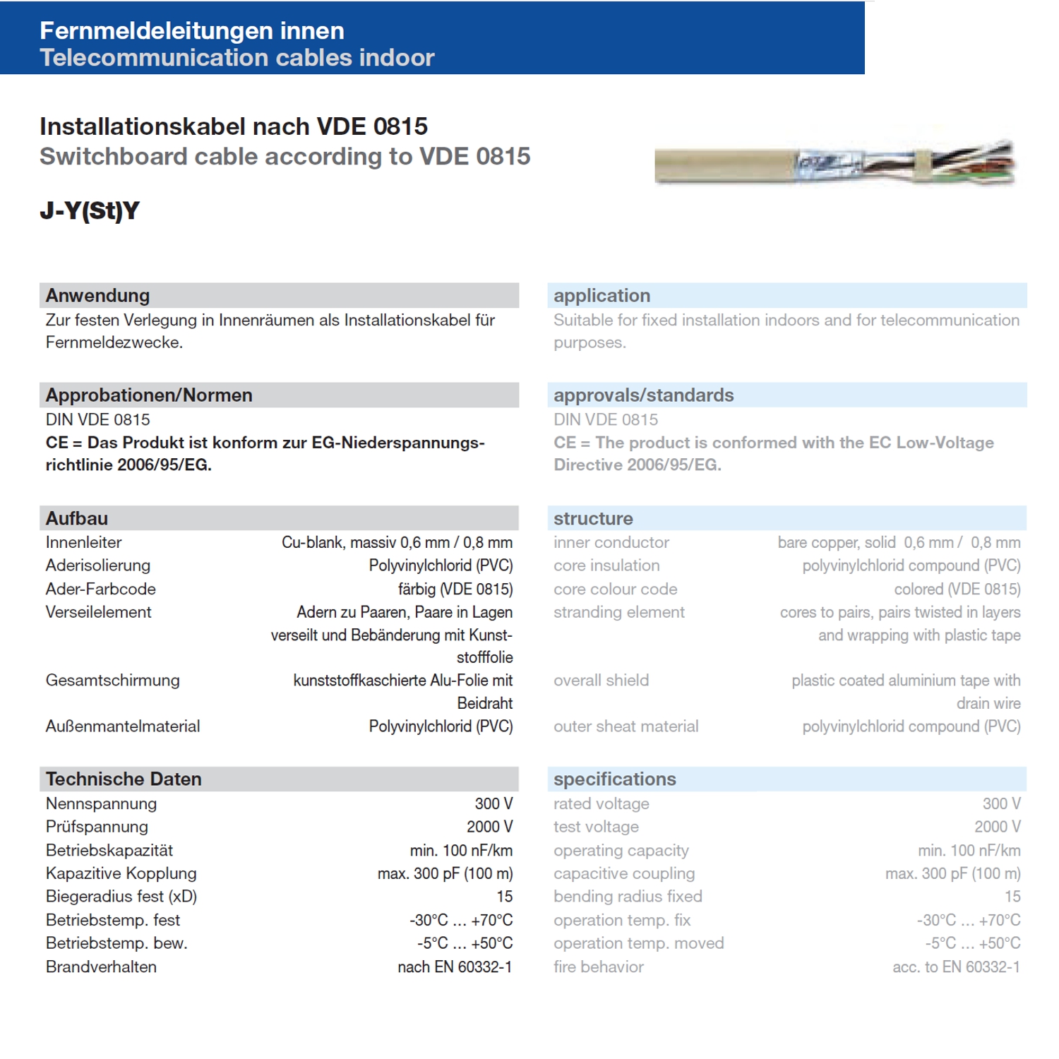 EIB/KNX Leitung J-Y(ST)Y 2X2X0,8 EIB, Bund 100 Meter;
