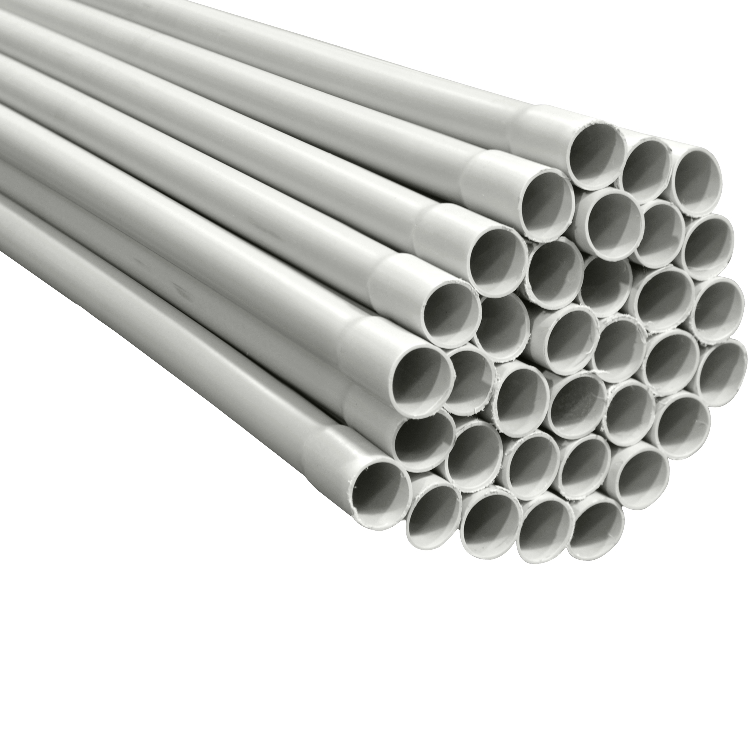 E-Rohr starr, aus PVC, einseitig gemufft, Kennzeichen: EN2221, Temperaturbereich: -5°C bis +60°C, Scheiteldruckfestigkeit: >320N auf 5cm, Schlagfestigkeit: 1 Joule bei -5°C, nicht flammausbreitend, foliert;