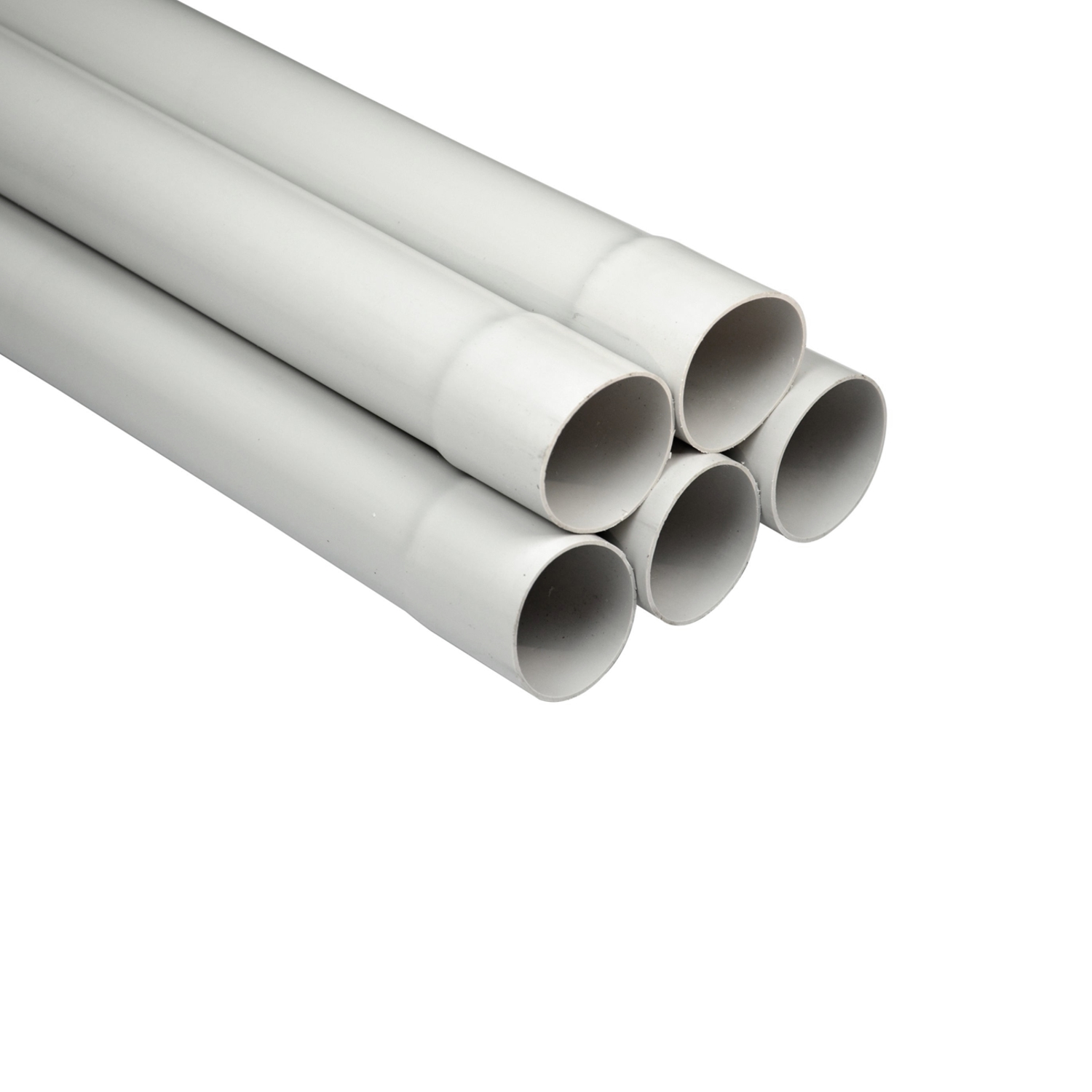 E-Rohr starr, aus PVC, einseitig gemufft, Kennzeichen: EN2221, Temperaturbereich: -5°C bis +60°C, Scheiteldruckfestigkeit: >320N auf 5cm, Schlagfestigkeit: 1 Joule bei -5°C, nicht flammausbreitend, foliert;
