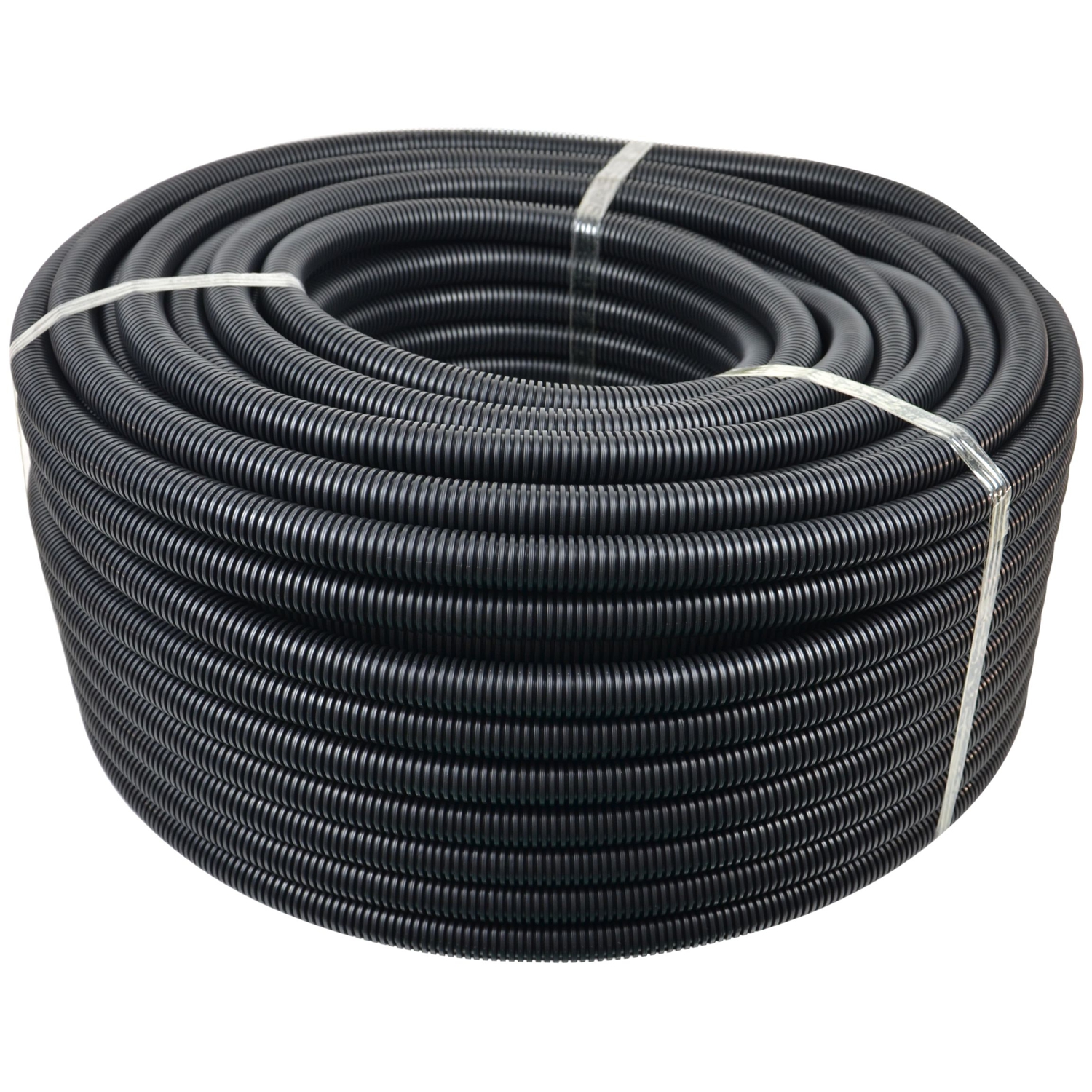 UV beständiges E-Rohr flexibel aus PP, Kennzeichen: EN3343-3, Temperaturbereich -25°C bis 105°C, Scheiteldruckfestigkeit >750N auf 5cm bei 23°C, Schlagfestigkeit: 2 Joule bei -25°C bzw. 6 Joule bei -5°C, nicht flammausbreitend, foliert;