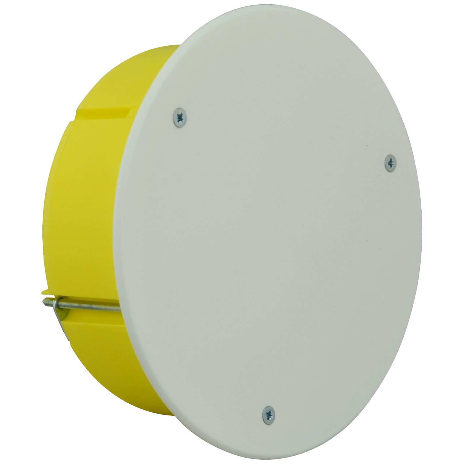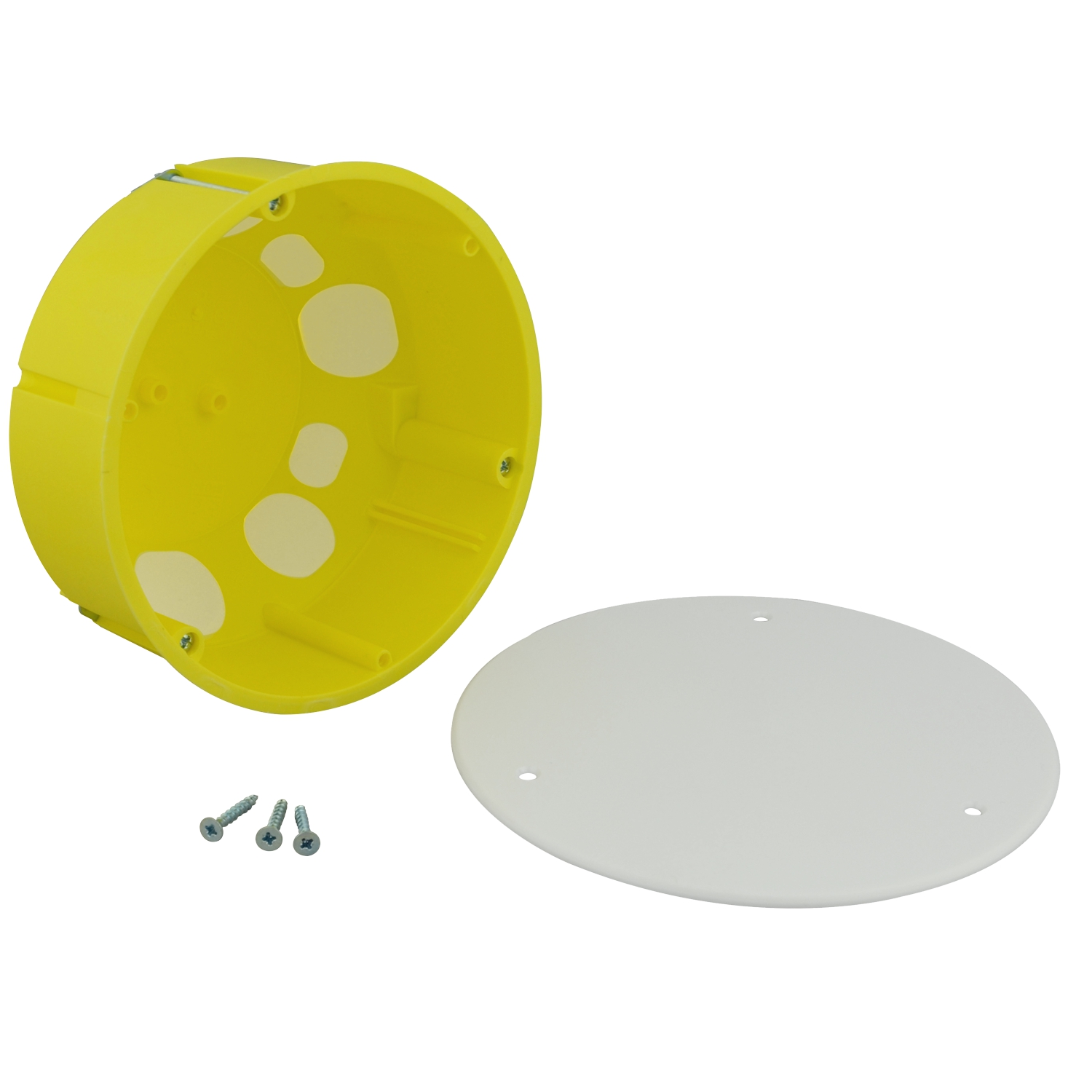Hohlwanddose inkl. Deckel, winddicht, Fräsloch Ø 120mm, Tiefe 65mm, Einführungen mit Durchstoßmembrane 3x25mm + 3x20mm + 3x10mm, halogenfrei;
