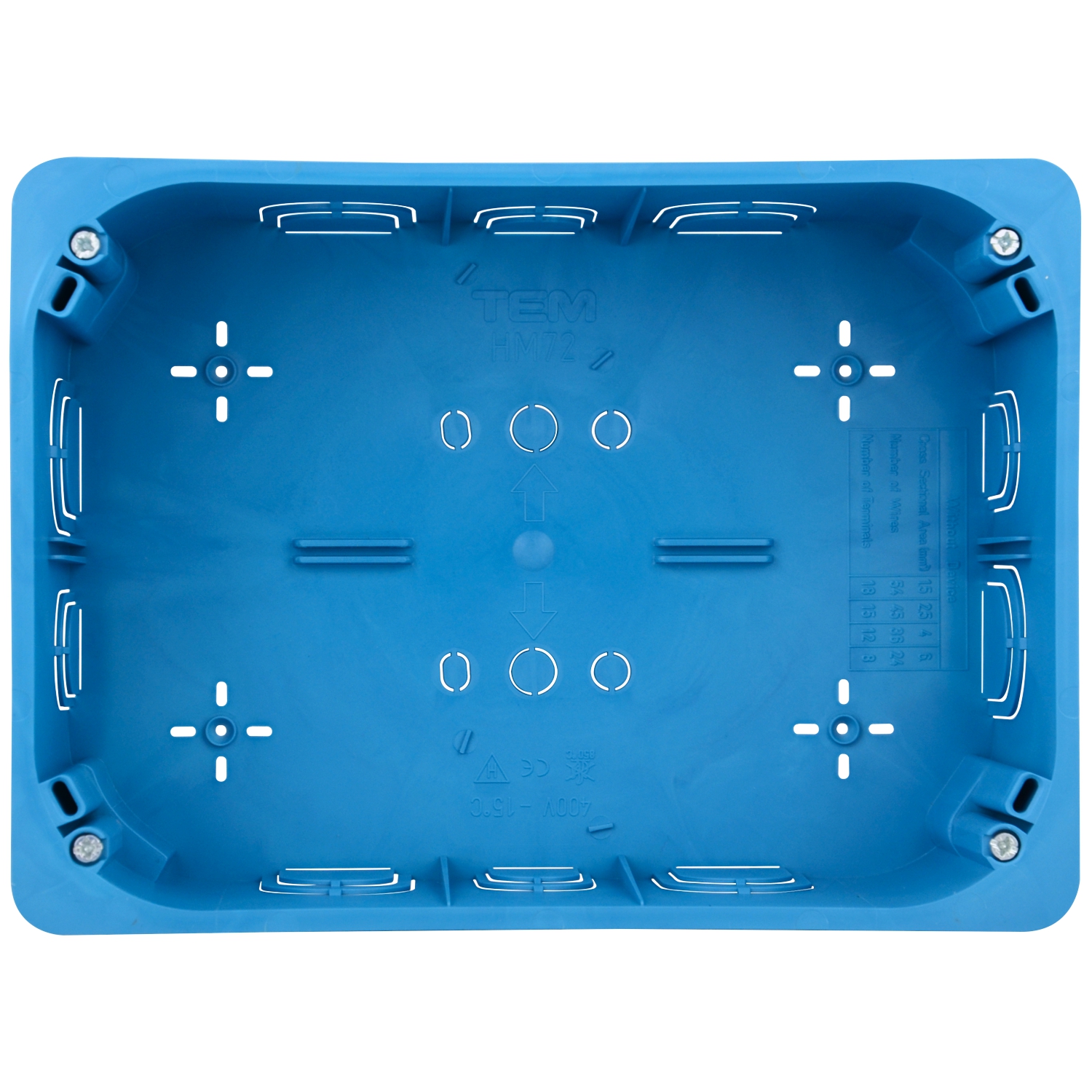 Hohlwand-Verbindungskasten, Ausbrecheinführungen 4x M20/25 und 6x M25/32, 4 Befestigungsdome, Fräsloch 4x Ø68mm - der Kasten dient als Bohrschablone; Deckel separat bestellen!