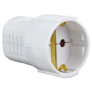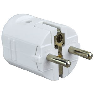 Schutzkontakt-Stecker aus Kunststoff (Polypropylen PP), mit Zugentlastung, Nennspannung: 250V, Nennstrom: 16A, Leitungsquerschnitt: max. 1.5mm², Schutzart: IP20;