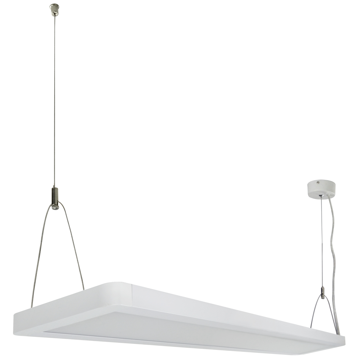 Leuchte für Anbau- oder Seilpendelmontage (Seilabhängung separat bestellen), 220-240V AC 50Hz, Lichtfarbe einstellbar (3000/4000/6000K), SK II, CRI=85, 35.000h, IP20, Gehäuse Aluminium, mikroprismatische Abdeckung aus Polystyren / Endkappen aus Polycarbonat, nicht dimmbar, Temperaturbereich: -15°C bis +45°C;