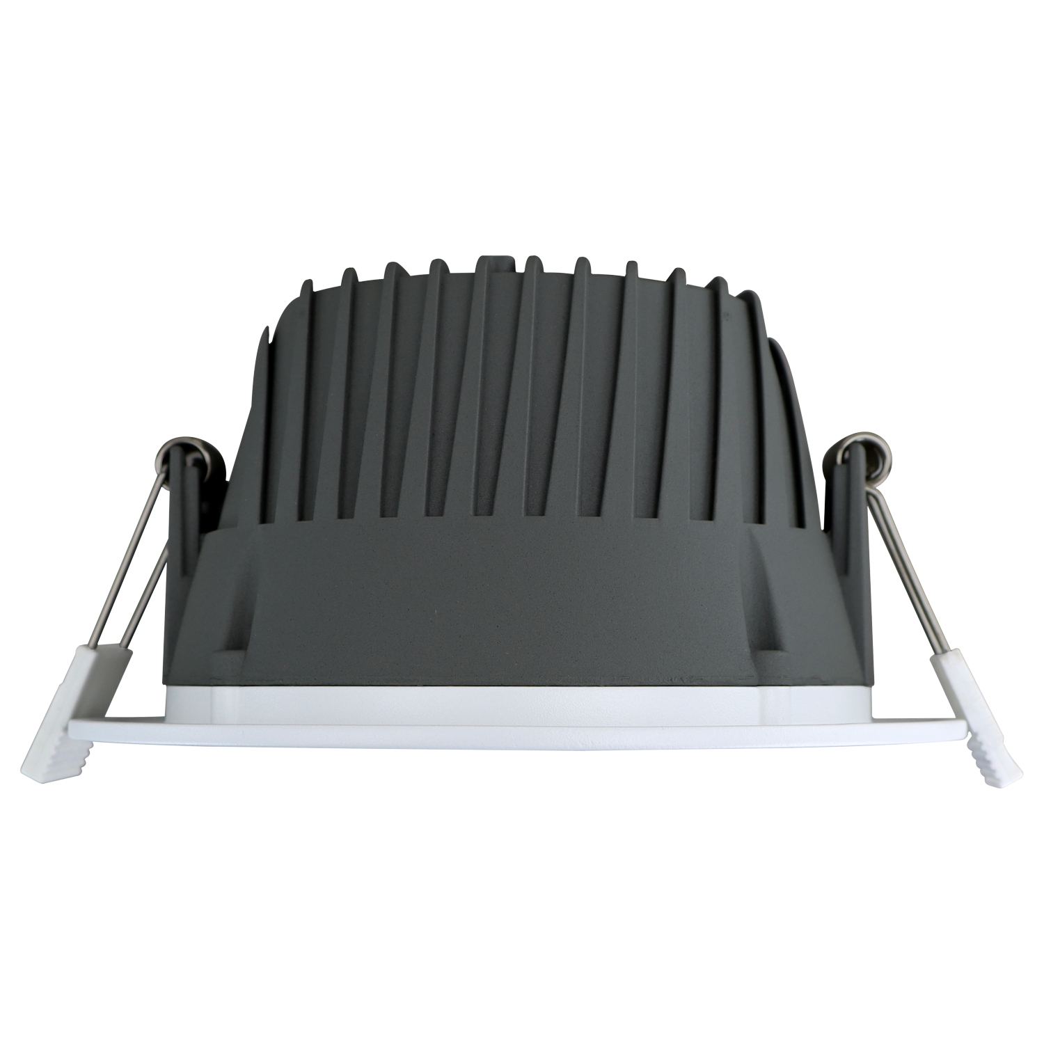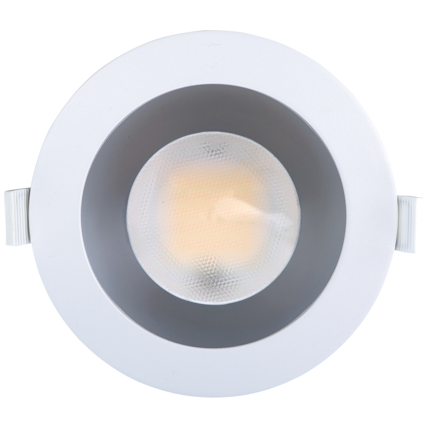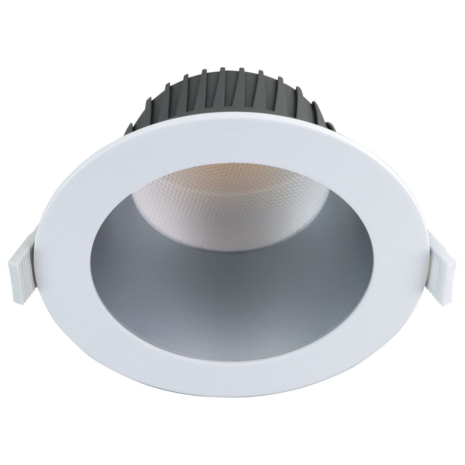 Einbau-Downlight, Lichtfarbe einstellbar (CCT - 3000/4000/6000K), Anschluss: 220-240V AC 50Hz, UGR≤19, CRI>80, Lebensdauer: 50.000h, Schutzklasse II, Schutzart IP65, nicht dimmbar, Gehäuse und Rerflektor aus Aluminium, Abdeckung aus Polycarbonat, Temperaturbereich: -15°C bis +35°C, Ausschnittmaß Ø145-165mm, Einbautiefe 100mm;