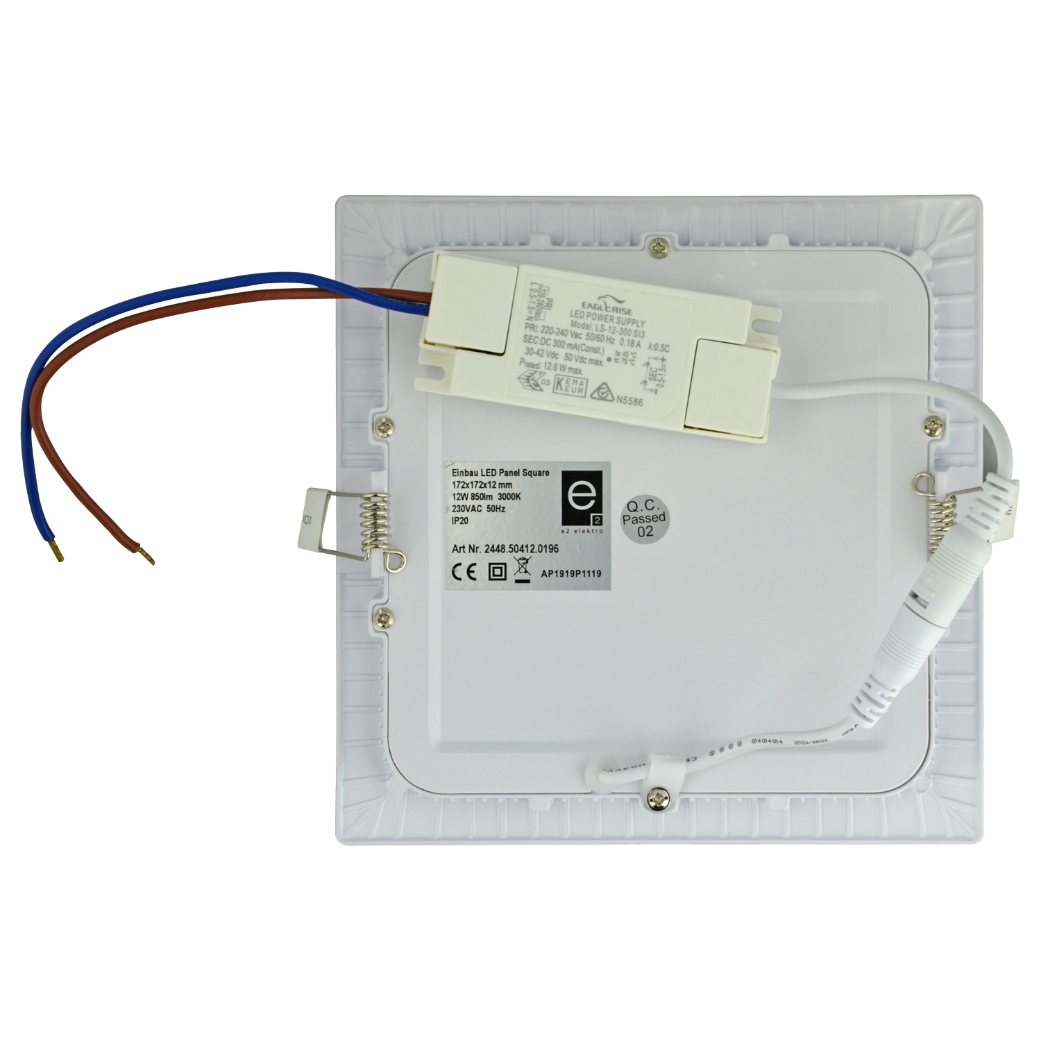 Einbau Panel mit weißem Aluminiumrahmen, Ausschnittmaß 160x160mm, Einbautiefe 22mm, Rückseite aus Stahlblech, Klappfedermontage, Abdeckung Acrylglas opal, 3000K, durchschnittliche LED Lebensdauer 30.000h, Temperaturbereich: -15°C bis +40°C, Anschlussspannung 230VAC, inkl. LED Treiber, SK II, IP20;