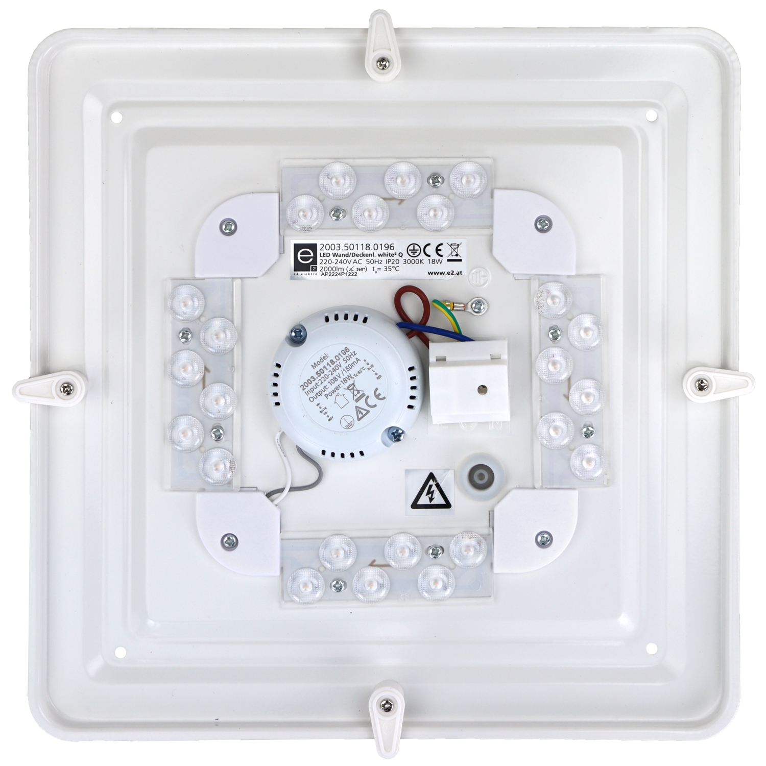 Opalleuchte für Wand- und Deckenmontage, Anschluss 220-240V, 50Hz, SK I, IP20, Leuchtenunterteil Stahlblech, Abdeckung PMMA opal flat, CRI>80, Lichtaustritt direkt, Abstrahlwinkel 116°, nicht dimmbar, Temperaturbereich - 15°C bis +35°C, LED-Lebensdauer bis zu 25.000h