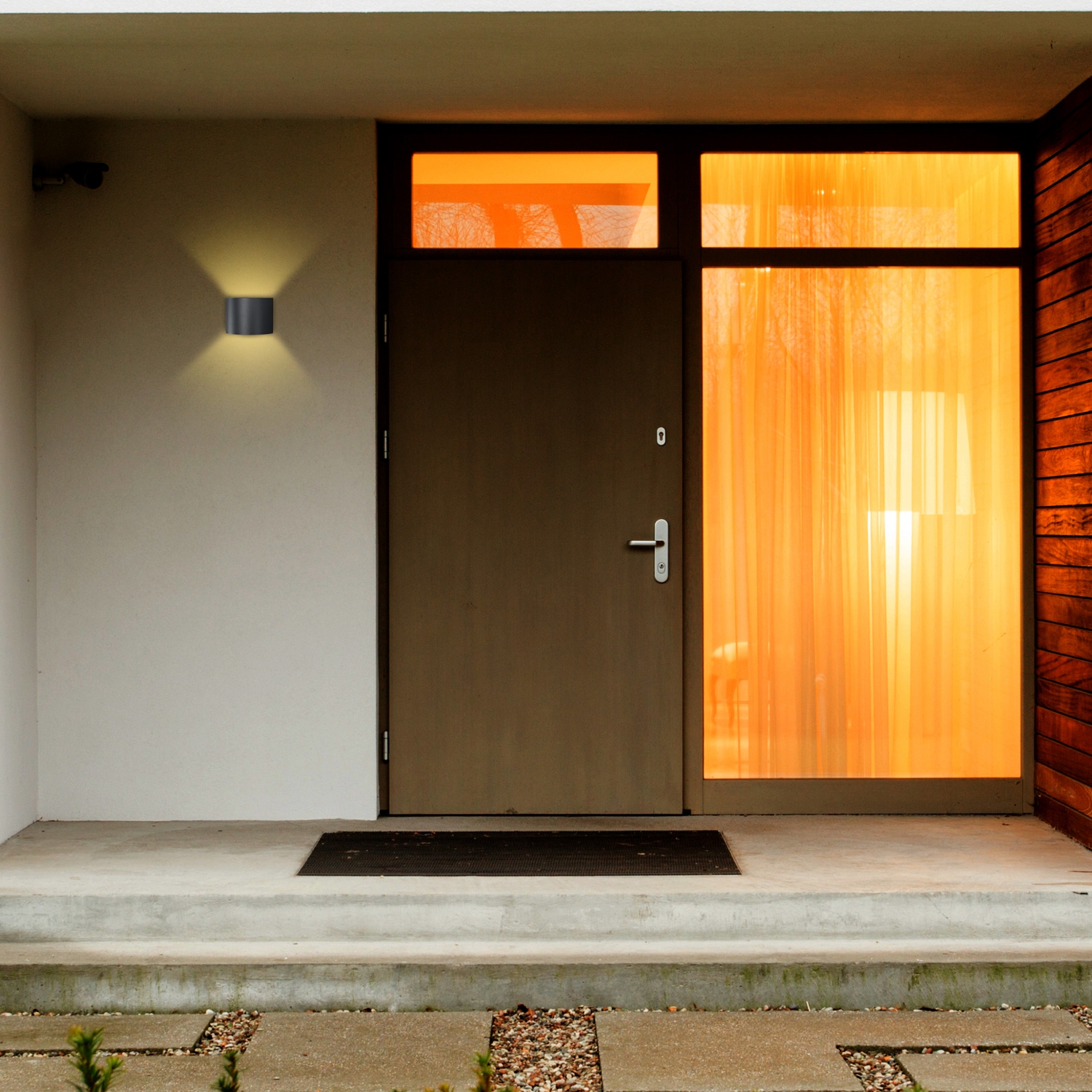 Leuchte für Wandmontage mit up&down-Effekt und verstellbaren Lichtblenden (oben und unten unterschiedlich adjustierbar), IP65, SK I, Lichtfarbe: einstellbar CCT 3000/4000/6000K, 220-240V 50Hz, Aluminium-Gehäuse, CRI>80, nicht dimmbar, Temperaturbereich -15°C bis +40°C, Lebensdauer bis zu 25.000h;