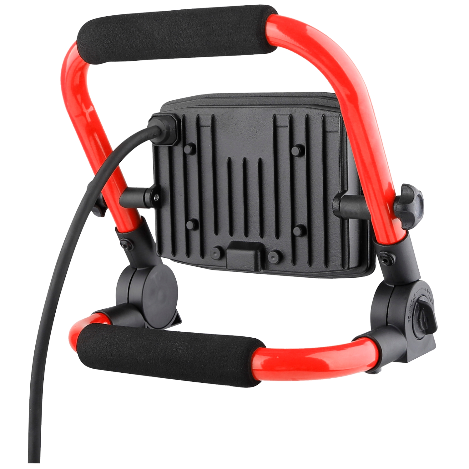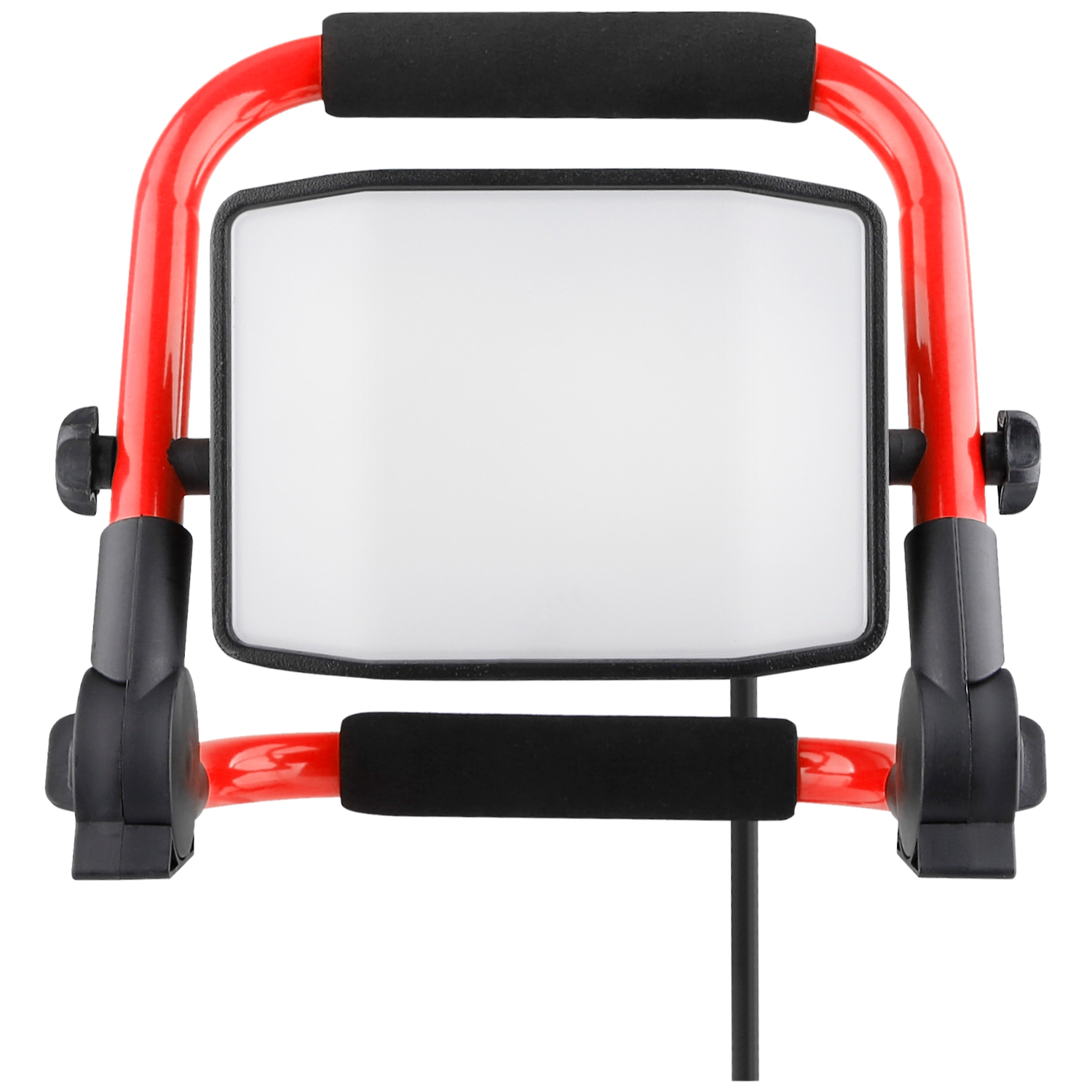 Robuster Baustrahler mit 1,5m Anschlusskabel, Strahler 360° frei drehbar, Bügel von 0° bis 170° klappbar, Gehäuse: Aluminium-Druckguss, Abdeckung: Polycarbonat, Schutzart: IP65;