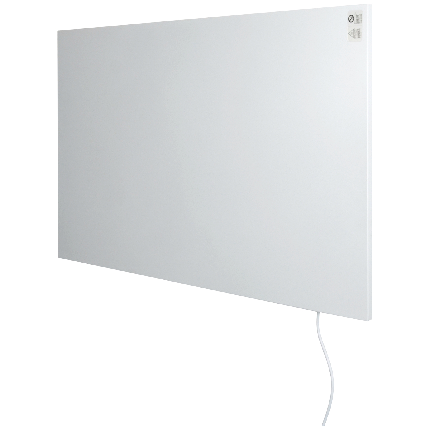 Heizelement aus Carbon crystal für Räume von 8-20m² (unverbindlicher Orientierungswert: basierend auf Raumhöhe 2,50m und Dämmung nach heutigem Standard), Oberflächentemperatur: 90-110 °C, Lebensdauer: 100.000Std., rahmenlos, Oberfläche Vorderseite aus weißem Aluminium, mit Überhitzungsschutz, 1.9m Anschlussleitung mit Stecker, Anschluss 220-240V AC 50Hz, IP54, inkl. Montagematerial, Montage: Wand oder Decke; bei Deckenmontage ist eine absturzsichere Befestigung sicherzustellen (Deckenmontageset als Zubehör Art.Nr. 4402990101396 erhältlich);Dieses Produkt ist nur für gut isolierte Räume oder für den gelegentlichen Gebrauch geeignet.