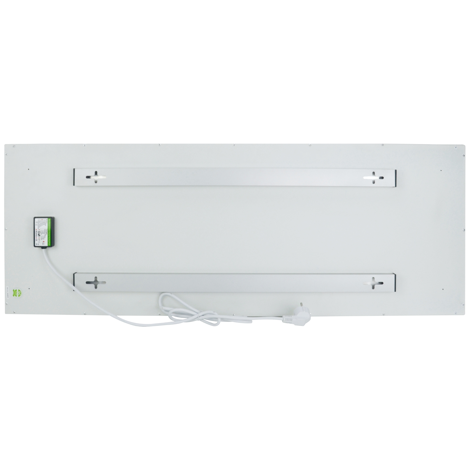 Heizelement aus Carbon crystal für Räume von 6-15m² (unverbindlicher Orientierungswert: basierend auf Raumhöhe 2,50m und Dämmung nach heutigem Standard), Oberflächentemperatur: 90-110 °C, Lebensdauer: 100.000Std., rahmenlos, Oberfläche Vorderseite aus weißem Aluminium, mit Überhitzungsschutz, 1.9m Anschlussleitung mit Stecker, Anschluss 220-240V AC 50Hz, IP54, inkl. Montagematerial, Montage: Wand oder Decke; bei Deckenmontage ist eine absturzsichere Befestigung sicherzustellen;Dieses Produkt ist nur für gut isolierte Räume oder für den gelegentlichen Gebrauch geeignet.