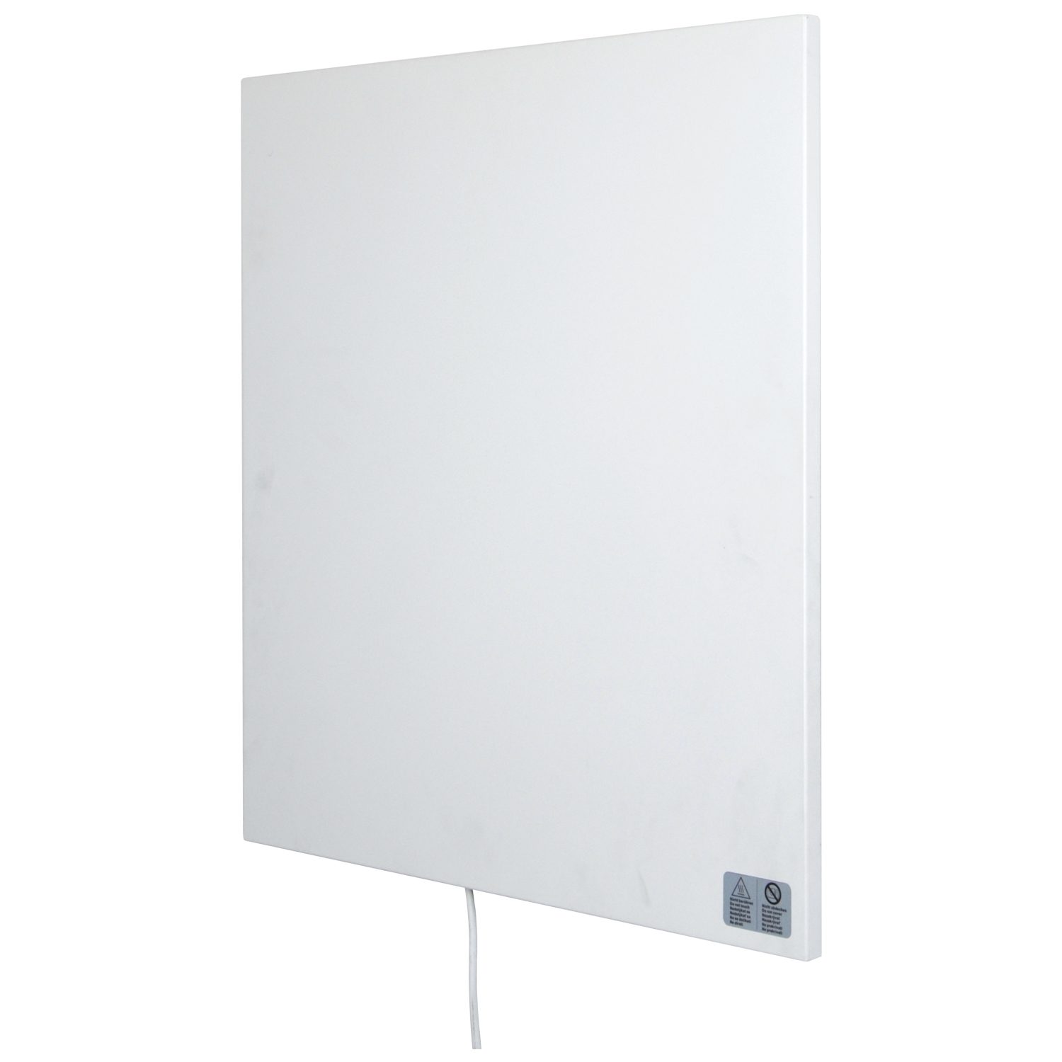 Heizelement aus Carbon crystal für Räume von 2-4m² (unverbindlicher Orientierungswert: basierend auf Raumhöhe 2,50m und Dämmung nach heutigem Standard), Oberflächentemperatur: 90-110 °C, Lebensdauer: 100.000Std., rahmenlos, Oberfläche Vorderseite aus weißem Aluminium, mit Überhitzungsschutz, 1.9m Anschlussleitung mit Stecker, Anschluss 220-240V AC 50Hz, IP54, inkl. Montagematerial, Montage: Wand oder Decke; bei Deckenmontage ist eine absturzsichere Befestigung sicherzustellen;Dieses Produkt ist nur für gut isolierte Räume oder für den gelegentlichen Gebrauch geeignet.