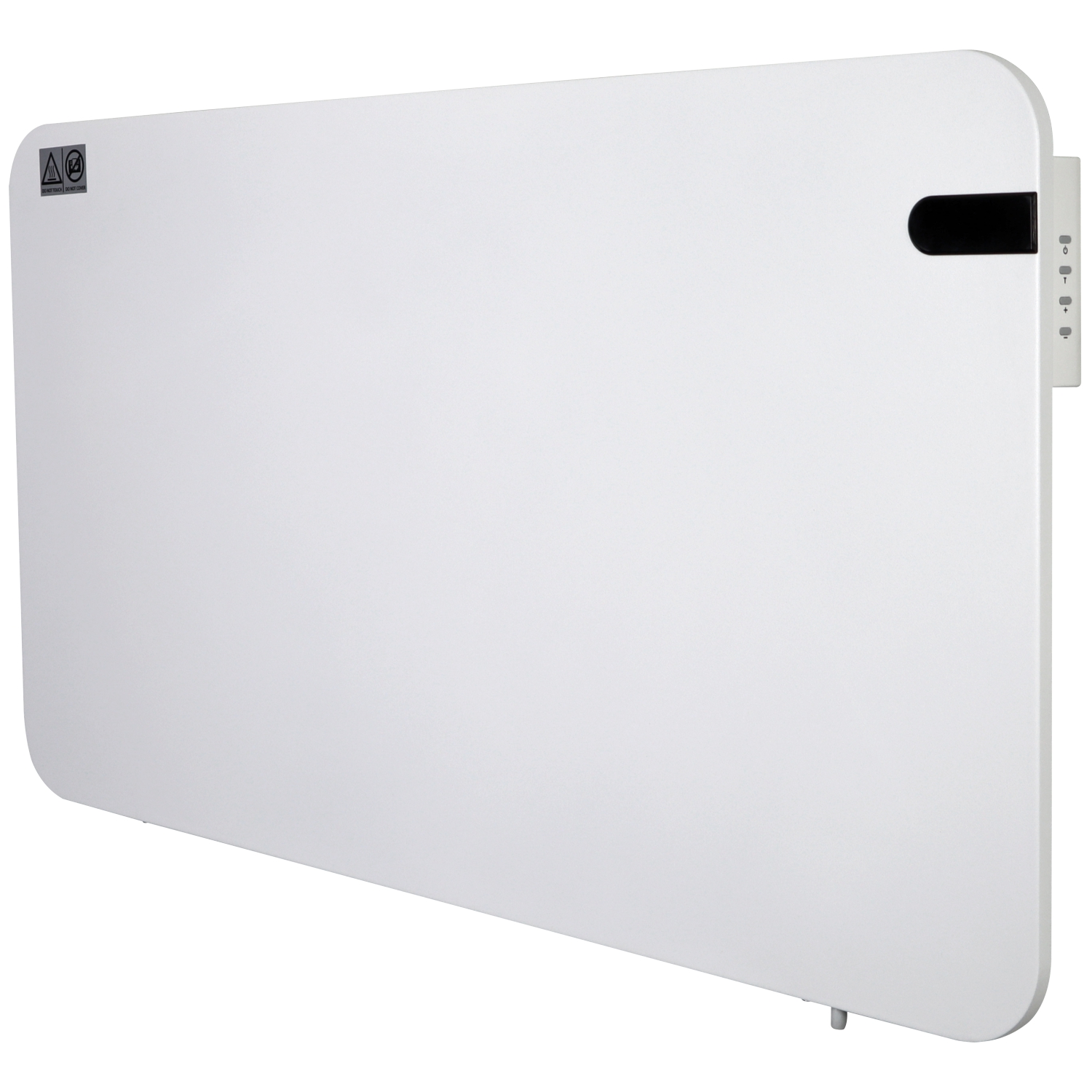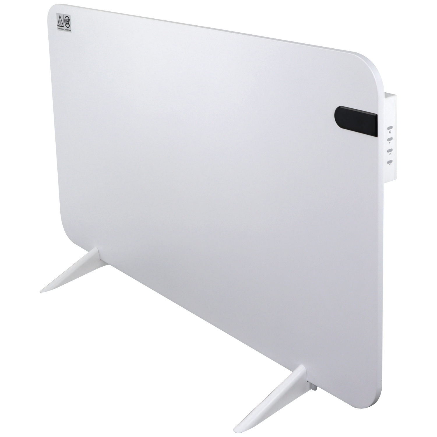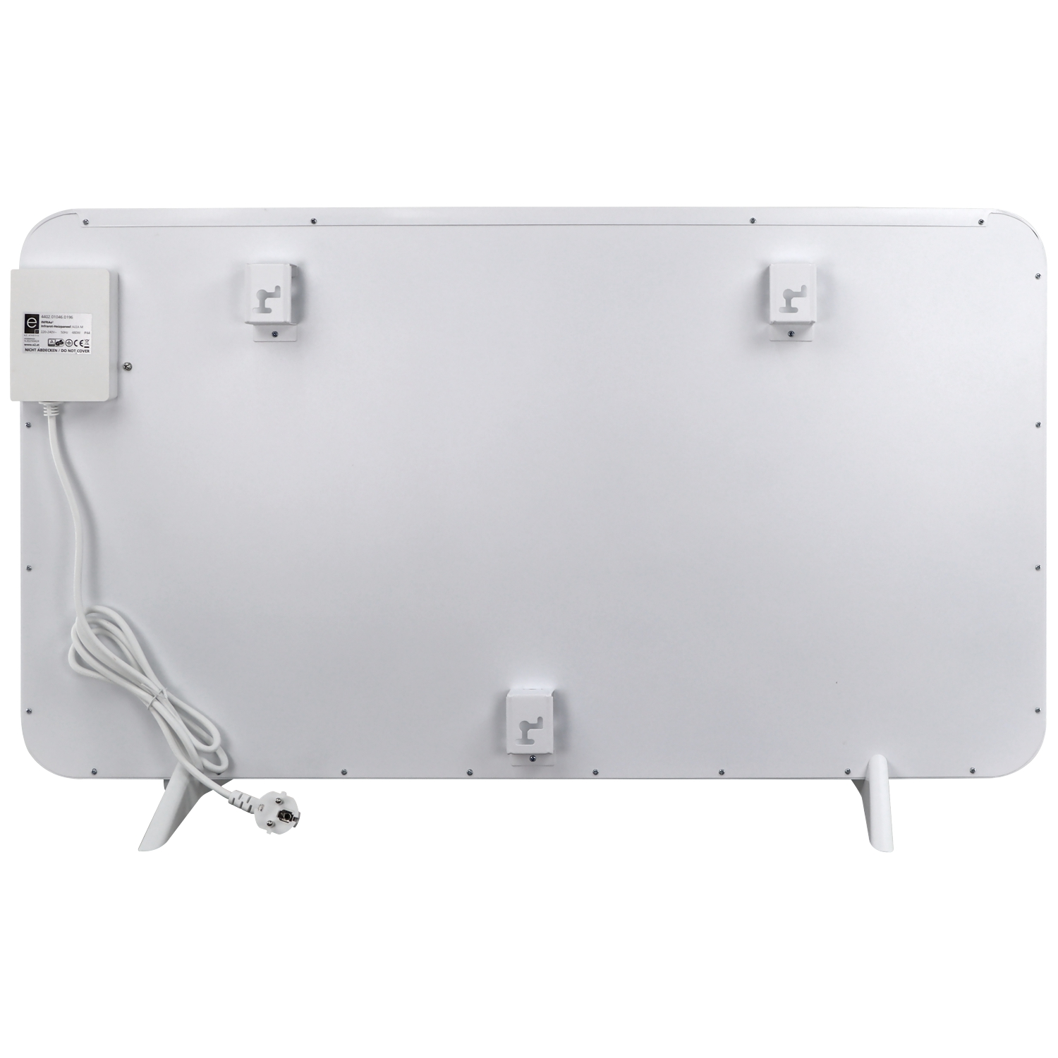 Infrarot-Heizpaneel mit integrierten Thermostat, inkl. Fernbedienung und Standfüße, für Räume von 6-10m² (unverbindlicher Orientierungswert: basierend auf Raumhöhe 2,50m und Dämmung nach heutigem Standard), mit Überhitzungsschutz, 1.9m Anschlussleitung mit Stecker, Anschluss 220-240V AC 50Hz, IP44, Lebensdauer: 100.000Std., Temperatureinstellbereich: 0°C bis +55°C, Timer: 0-24Std., Montage an Wand oder freistehend mittels Standfüße (inkl.); bei Montage mit Standfüßen ist das Heizpaneel gegen Kippen zu sichern;
